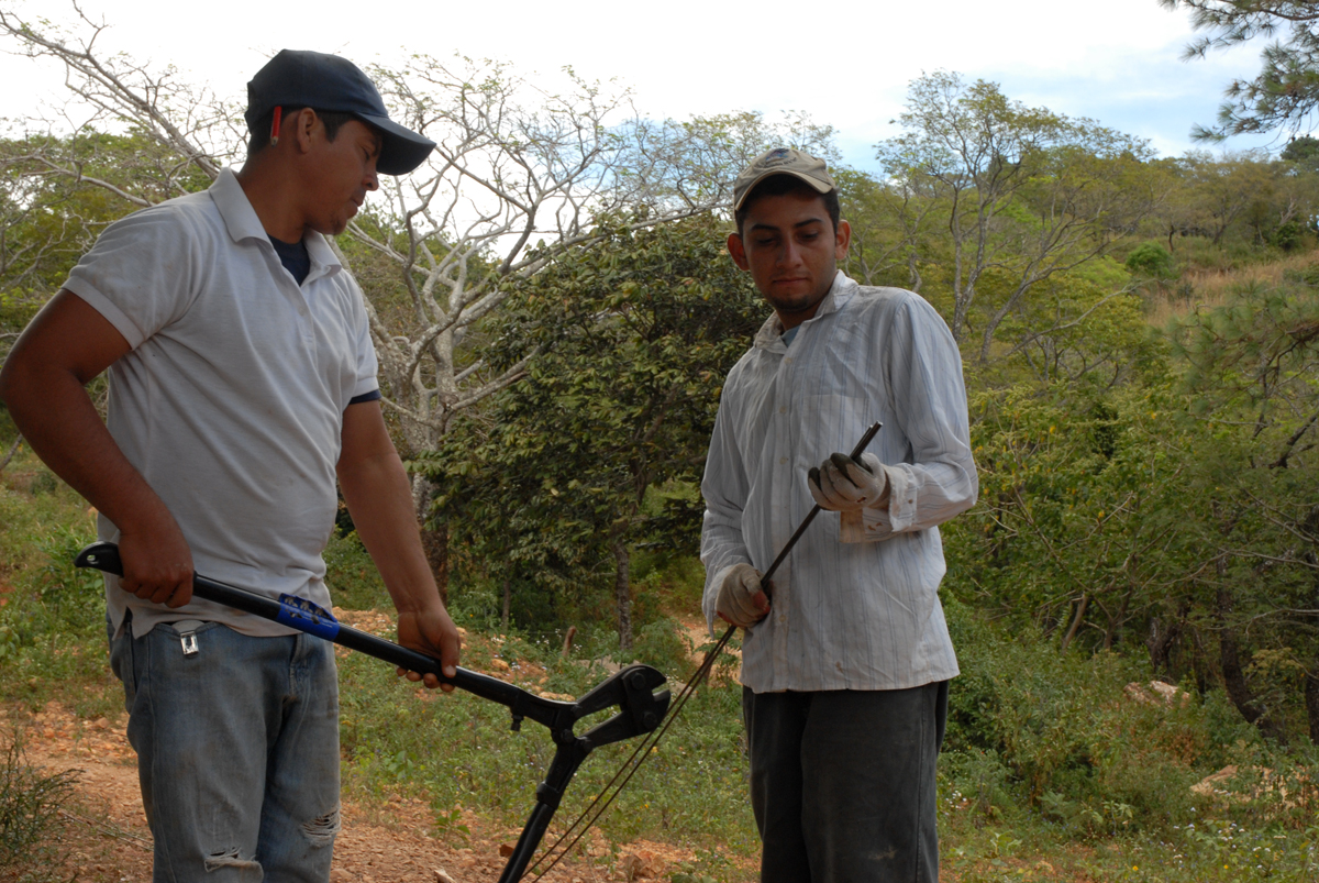 It’s our third day of work at the preschool in Las Minitas, where Sergio, our mason, is on his way up to begin work after Gustavo and other men (and some kids) from the community have dug a trench around the footprint and also the deep foundation holes before the holy week.
