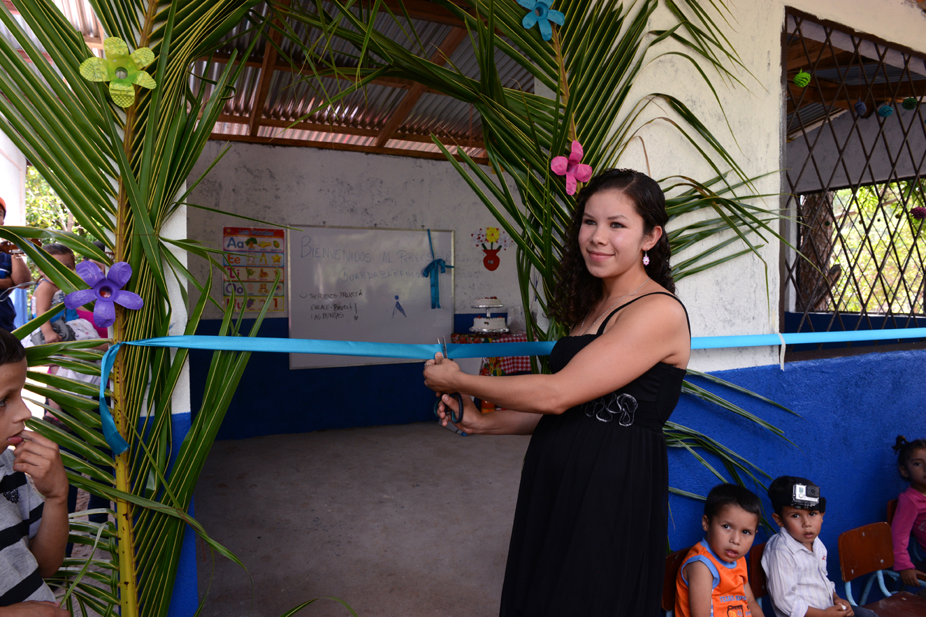 Marisela, the teacher, cut the ribbon, because hey, it's her school! I had her choose where to set up the board, the bookcase, where it fits best. She's also a scholarship recipient of The Friends Project, attending high school. Here, those with high school education teach preschool, paid by the government, and she is among the few who have done so in Las Minitas.