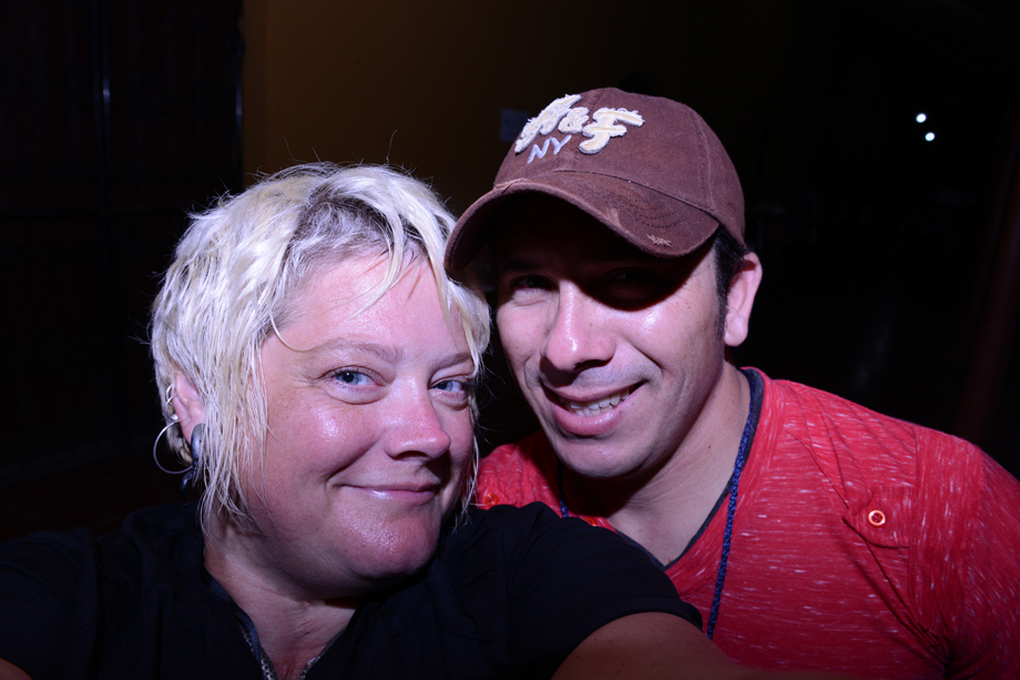 • dancing in a room so full of revelers to reggaeton that it literally was like standing in a shower, with my two favorite dance partners. Pelon and Casper, the welder who helped craft and place the bars on the window of the school.