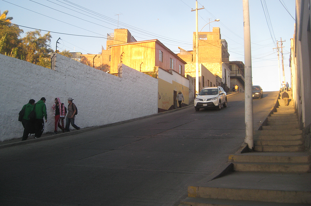 Here are some photos from my neighorhood here. My daily walk, the main plaza a few blocks away, guys heading to the skatepark, the hostel and the friends I've made.