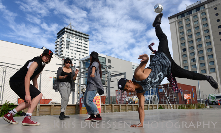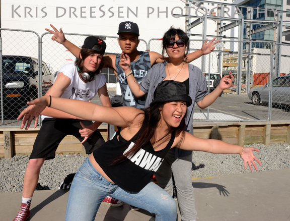 His friends Yvonne Ivy Tinilawu, Grayson Farrant and Lusharnia Wihapi-Shaw were here practicing their hip hop moves.