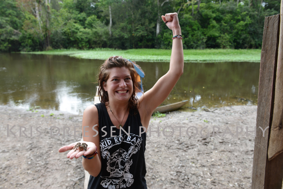 Scared to death of them, it was a good 15-minute inner psyche battle to do it and a personal victory of appreciating ALL the creatures in the Amazon rainforest when she did it.