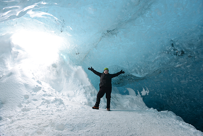 The ice was so blue! Inside, it can be 20 meters thick. Each year, the opening can change depending on whether nature fills in the opening or makes a new.