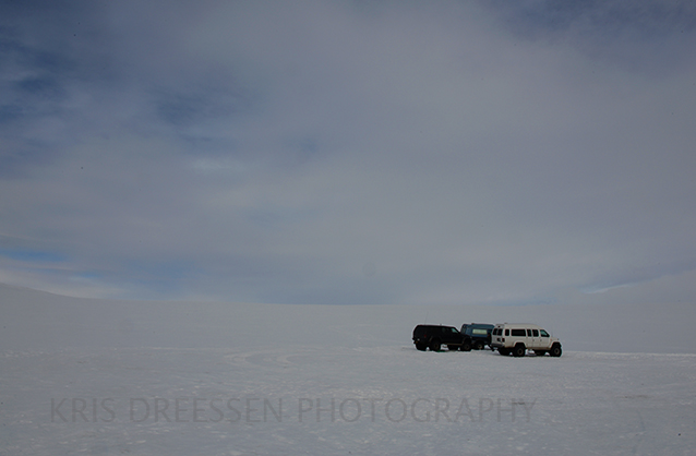 Tarek, Karim and I went with an outfit in the largest vehicles ever across the glacier, and to a small hole where we entered an ice cave.